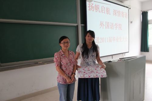 会上,学院领导分别给安徽省品学兼优毕业生、安徽省选调生、西部计划志愿者等5名同学颁发了纪念品。