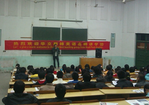 加拿大的枫叶,西雅图的浪漫,日本的动漫……,曾在美国教过中国人、日本人、加拿大人学英语的Kyle带来了一场充满异域风情的演讲。他条理分明的演讲,流利的英语却通俗易懂,同学们在台下认真听讲,不时作着笔记。演讲中,Kyle强调了发音规范、口形到位的重要性,并带领大家一起说经典语句,纠正同学们口语发音的不足。Kyle幽默地讲述了美国的概况、普通美国人的生活方式,以及他在中国的生活和工作经历,并与学生们进行了充分互动。外国专家的幽默风趣、博闻强记和敬业精神给同学们留下了深刻印象。