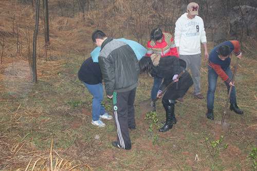 下午1点40分,虽然天气下起了小雨,但是青年志愿者们依然在淅淅细雨中来到了洞山隧道南侧的山上开展植树活动,同学们分工协作,有的挖坑,有的整地,有的分苗,有的埋土,个个干劲儿十足,每道程序都井井有条地进行着。种完树后,志愿者们认认真真地清理沿山的塑料泡沫、纸袋、水瓶等,还树苗一片净土。