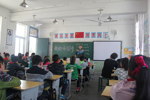 3月17日,SJB世俱杯官方网站青年志愿者们在院团委书记张学森老师的带领下来到定点帮扶的谢家集区第二小学开展回访互动,宣传中国梦,与小朋友们话梦想。