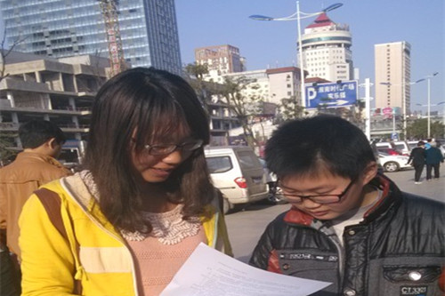 今天,你节约用水了吗:志愿者们向来往行人发放节水传单,和他们交流节水经验和技巧,并介绍我国目前严重的水危机以及刻不容缓的形势,让他们在了解更多节水知识的同时,将节约用水内化成生活原则。