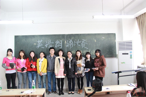 选手们精神抖擞,信心满满,各自朗诵精心准备的美文,刘晓菲朗诵的《Youth》清新流畅,陈芳模仿的林肯在葛底斯堡的演说慷慨激昂,胡鹏鹏模仿的VOA时政新闻抑扬顿挫,展现了良好的语音、语调、仪态和感染力,给在座师生留下了深刻的印象。经过精彩的角逐,刘晓菲获得一等奖,史皓冉和余曼获得二等奖,陆蓉、金丽和段艳莉获得三等奖。