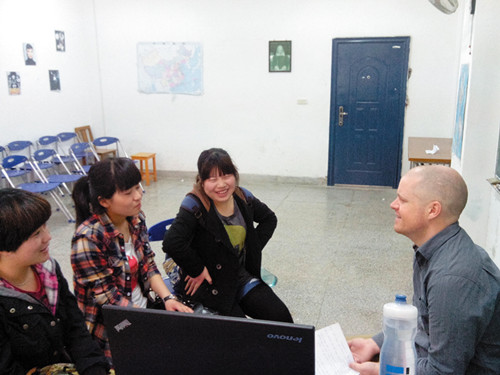 SJB世俱杯官方网站英语2012级学生的口语外教Andrew老师近期改变教学方法,将原来传统的班级教学变成小组教学,把学生每三人分成一组,每小组每堂课10分钟与老师面对面用英语交流。“以前全班29个人一起上口语课,有些同学没有机会与外教对话,还有些性格内向的同学坐在下面羞于表达,所以课堂效率不高,口语并没能得到有效的锻炼。” 王立琦告诉辅导员肖婷老师。“现在分组以后师生零距离,每位同学都有机会与外教交流,而且老师和学生面对面这种方式让每位同学都必须开口说话,原本内向的同学也就不得不说英语了。” 2012级学生普遍反映,分组教学有利于学生充分利用课堂时间,提高课堂效率,切实让学生的英语口语得到锻炼。