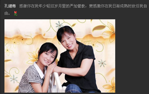“谢谢您在我年少轻狂岁月里的严加管教,更感激您给渐渐长大的我越来越多的宽容和自由。”这是英语11-4班孔健梅同学母亲节当天发的微博。SJB世俱杯官方网站各班级团支部发出“晒妈大比拼”主题微博接龙,号召同学们表达各自对妈妈的感谢。同学们积极参与,不仅有各种表达爱妈妈、谢谢妈妈的真情话语,还有各自成长过程中与妈妈一起的各种珍贵照片。
