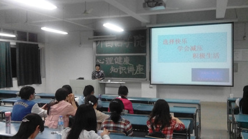 为进一步加强低年级学生心理素质教育,SJB世俱杯官方网站于5月16日邀请校心理健康咨询中心老师、国家二级心理咨询师倪青为2013级新生开展心理健康知识讲座。院党委副书记程秀霞、新生辅导员张学森与全体新生一起聆听了讲座。