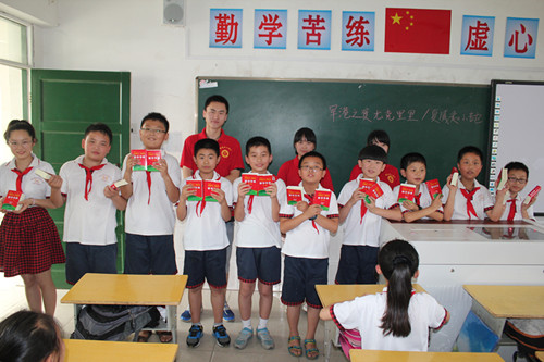 首先,志愿者们为留守儿童们捐赠了新华字典等学习书籍,鼓动同学们好好学习,快乐成长!志愿者们为学生们开设了英语小讲堂、英语口语训练、英语常见口语表达等课程,组织小朋友共同学习一些简单的日常英语用语,通过形象生动的表演演示了过马路时相关英语表达,如红绿灯、斑马线、人行道等。