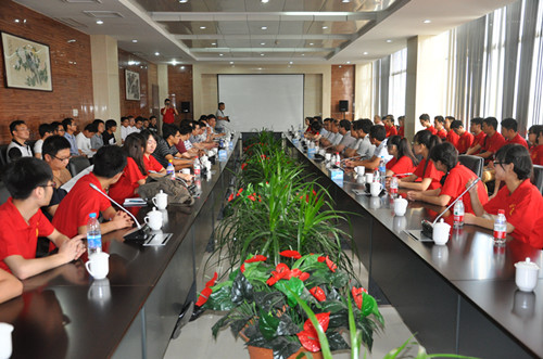 校友、口孜东矿矿长丁家贵和党委书记马纪热情接待了观察团成员,向大家介绍了口孜东矿的建设发展历程和目前的运行状况。与会人员共同观看了关于口孜东矿现代化建设成果的短片,围绕煤矿企业发展现状与趋势、人才培养与技术合作等方面进行了积极的交流。校党政办副主任方运纪、校团委副书记赵宁和两个学院党委领导参加了交流。