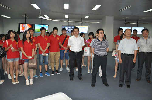 叶校长一行在口孜东矿领导的带领下,饶有兴趣地参观了集控中心、调度室、井口、培训中心实操基地、员工活动室、职工娱乐中心等,实地感受了煤矿现代化、智能化技术的飞速发展。在国投新集口孜东矿集控中心内,工作人员们面对电脑轻点鼠标,宽大的模块式视屏上就会显示出采煤面综采机自动化割煤的镜头。“现在,我们利用先进的视频监控系统,可以轻松查看设备运行的各种参数、图形图表与实时运行情况,实现对设备和系统的远程控制,同时实现工作面‘一键式’启停。”口孜东矿的工作人员万庆海介绍道。