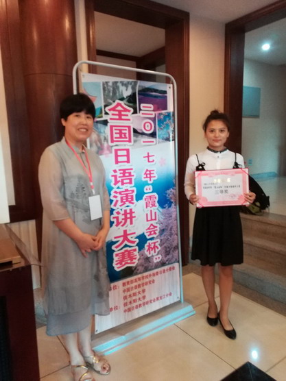 7月12日,2017“霞山会” 杯日语演讲大赛在佳木斯大学外国语言文化实训基地举行。我校日语专业2015级本科生陈万丽参赛并荣获三等奖,指导教师朱亚青荣获“优秀指导教师奖”,为学校争得了荣誉。