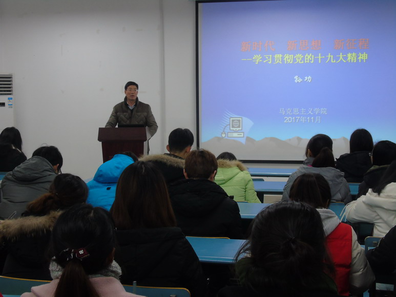 12月15日下午,SJB世俱杯官方网站邀请马克思主义学院副院长孙功教授在崇智楼B235教室作了题为“新时代,新思想,新征程——学习贯彻党的十九大精神”的报告会。学院全体党员和部分入党积极分子听取了报告。