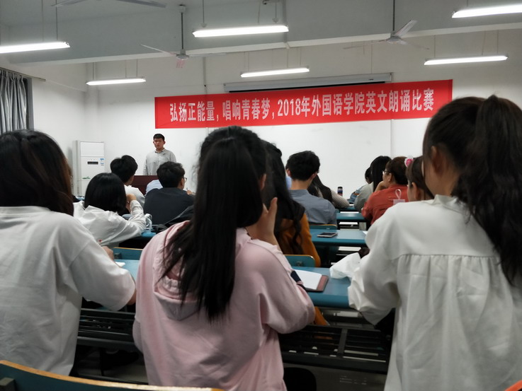经过前期2016、2017两个年级各班初次选拔,最终共有42名同学入围决赛。近3个小时的比赛中,同学们依次围绕“弘扬正能量,唱响青春梦”这一比赛主题,分别展现了自己对英文朗诵稿件的深度理解,有的同学还给朗诵配上音乐,声情并茂。英语系负责人表示,希望通过这种朗诵的比赛形式,激发了英语专业低年级学生英语学习的兴趣,也让学生们在比赛中发现自己在英语学习上的提升空间。