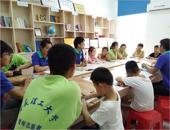 “大手拉小手,爱心满校园”教育关爱服务团的大学生志愿者们在社区活动室和社区近20名青少年举行了简单的见面会。在互相熟悉之后,志愿者们对孩子们进行了防溺水知识的宣传教育,告诉青少年如何在游泳时注意自身安全、如何在遇到危险时进行自救和他救。志愿者们为青少年们讲授了精心准备的英语、日语课程,为他们辅导暑期作业,还教给了他们一些读书经验和方法,帮助他们解决一些学习和成长中的困惑。此外,志愿者还带领青少年们开展了一系列精心策划的小游戏。为鼓励青少年积极参与互动,提升自信心,志愿者们通过知识问答的方式向孩子们赠送了精心准备的玩具、文具、图书、手表等小礼物。