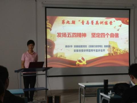 校第九期“青马菁英”训练营历时近一个月,精心安排了《青年大学习:从“五四”到现代青年,学习力就是竞争力》《做好新媒体环境下党的群众工作》《习近平青年工作思想的科学内涵与实践要求》《大学生就业创业能力提升与项目管理》《永远在路上:党风廉政与反腐败斗争》等5场理论授课,解读国家政策,学习习近平新时代中国特色社会主义思想,引导学员强化思想政治理论素养。此外,培训期间,还组织观看反腐电视专题片《打铁还需自身硬》、参观合肥科技馆、开展“共读一本书”读书心得研讨活动、团体素质拓展和“世界环境日”普法宣传社会实践活动,努力增强学员的廉洁自律意识,激发参训学员对知识的探索和对社会热点的关注,提升学员们的团队协作能力、团队凝聚力。