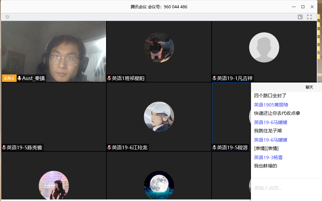 秦镇老师利用腾讯会议软件组织线上班会(辅导员秦镇提供)