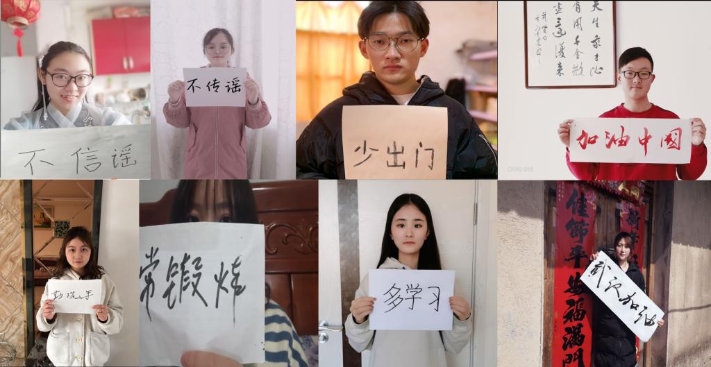 自我教育,人人贡献战“疫”力量。疫情抗击战打响以来,2019级新生在学校党委、团委和学院团委的号召下,积极从自己做起,为这场战‘疫’贡献自己的力量。2019级日语1班吴俊楠同学、2019级英语6班何薛云等同学通过题字“武汉加油”、“加油中国”等形式为战“疫”打气,在全院学生中掀起了线上接力活动,为战‘疫’助威。身在疫情重灾区湖北黄石市的2019级英语4班江永新同学积极乐观,每日都主动向2019级辅导员秦镇老师报告身体状况,还倡导全班同学在家要勤洗手、多做家庭卫生消毒。2019级英语5班班长程溶同学每天在班级群里积极配合辅导员疫情防控工作,针对返校时间谣言,她第一时间在群里澄清并号召大家在家安心学习,等待学校官方消息。2019级英语2班李雨昕同学说:“在疫情大敌前面,我们要相信国家、相信奋战在一线的白衣天使,相信科学!”2019级英语3班团支书黄翔同学在新学期网络主题班会里倡导同学们继续安心呆在家里做到“两多一少”——多学习、多锻炼、少出门、不出门。