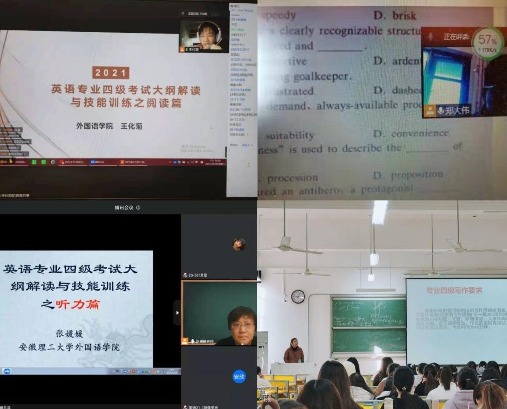 该活动分为专业教师传授备考方法和朋辈分享经验两种。学院邀请应伟伟,王化菊,张媛媛,郑大伟4位教师分别从写作,阅读,听力,语法、词汇等方面进行了方法指导。