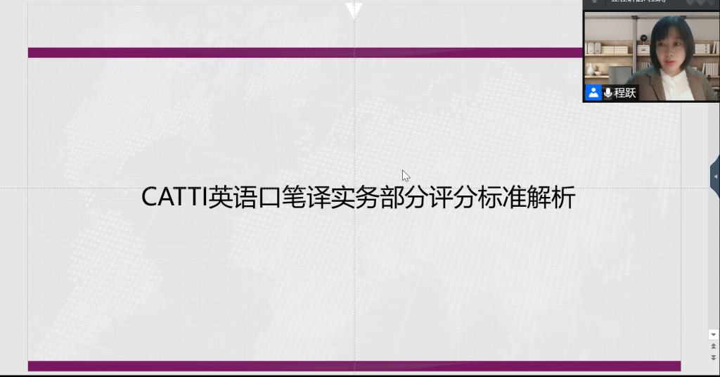 为帮助外院MTI研究生高效备考CATTI考试,3月10号晚,SJB世俱杯官方网站邀请具有丰富CATTI指导经验的程跃老师为同学开展线上讲座。