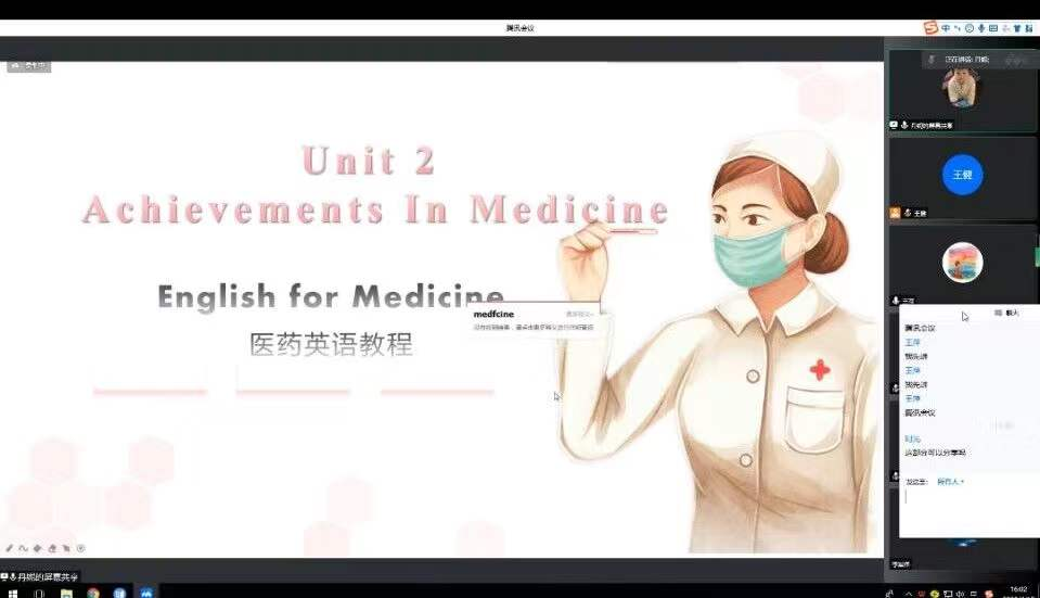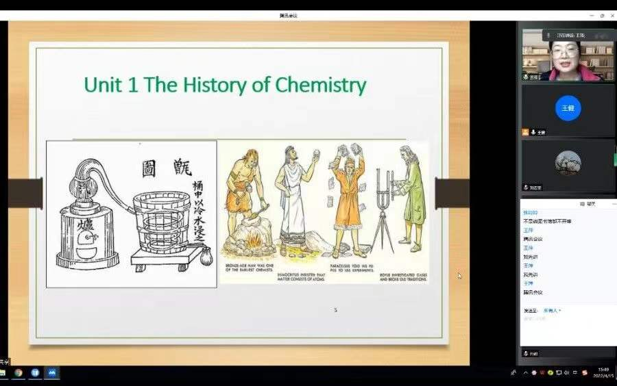 王健老师首先通过四个问题:什么是ESP?为什么学ESP?ESP学什么?ESP如何考核?向参会教师介绍了ESP的课程性质、学科特点、考核方式等重要问题,重申了ESP课程教学的意义和重要性。在示范课展示环节,王萍老师讲解了《化学工程英语》的第一单元The History of Chemistry,通过图片、练习等互动方式重点介绍了专业词汇和一般词汇的意义差别,化学专业单词的构词特点。陈丹老师讲述了《医学英语》和《安全工程英语》的导入部分,结合当下的疫情现实,融入了医者仁心等课程思政内容。