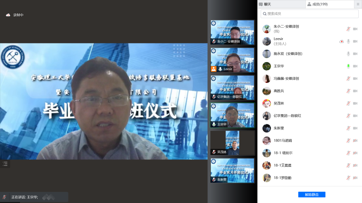 为强化理论学习与实习实训的知行合一,帮助学生巩固外语语言基础知识,提高语言服务能力,SJB世俱杯官方网站特邀安徽译创语言服务有限公司和厦门亿学软件有限公司举办“2018级英语本科专业线上实习营”活动,开营仪式于5月6日在线上举行。安徽译创语言服务有限公司总经理施永双、总监朱小二、厦门亿学软件有限公司销售总监陈银红等企业领导应邀出席,仪式由SJB世俱杯官方网站副院长李争主持,学院、企业实习指导教师代表和189名学生参加。