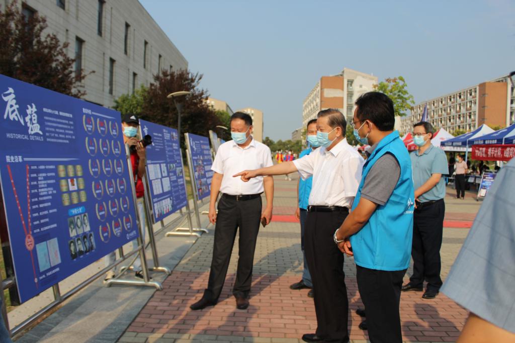 在学院迎新点前,袁亮校长驻足察看了学院简介展板内容,详细了解学院招生生源情况,询问实时报到数据,要求现场工作人员为新生提供优质服务,及时解决新生的困难。