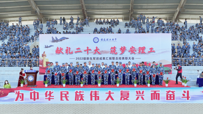 9月30日上午,学校在至诚体育场举行2022级学生军训成果汇报暨总结表彰大会。8300多名参训学员身着戎装,英姿飒爽,展示14天的军训成果。校党委副书记、校长、校军训工作领导组组长袁亮院士,副校长孟祥瑞,校党委常委、副校长、校军训工作领导组副组长宫能平、鲁超,校党委常委、党委组织部部长秦朗,承训部队驻校首长出席大会。