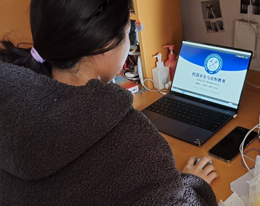 学生在宿舍参会(摄影:秦镇)