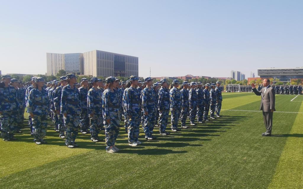 袁亮勉励同学们切实领会军训的要求和意义,认真上好国防军事教育“必修课”,一要发扬“一不怕苦、二不怕累”的精神,克服娇骄二气,自觉锤炼意志品质,大力培育战斗精神,为今后的学习和生活奠定坚实的基础;二要培养良好的组织纪律性,传承发扬“团结、奋进、博学、奉献”的校训精神、团队精神,心往一处想、劲往一处使,争取优秀的军训成绩,为良好的班风、学风、校风建设贡献力量;三要增强国防观念、国家安全意识和忧患危机意识,弘扬爱国主义精神、传承红色基因、提高国防素质能力,立志做有理想、敢担当、能吃苦、肯奋斗的新时代好青年。他关切地强调,“特别是女生在军训期间不要因为怕变胖而吃得少,军训期间能量消耗很大,你们要吃得多才能体质得到增强,才能度过军训。学习也是一样,你们要有一个好的身体才能去好好的学习,就算学习再好但身体不好也是一件令人遗憾的事。”