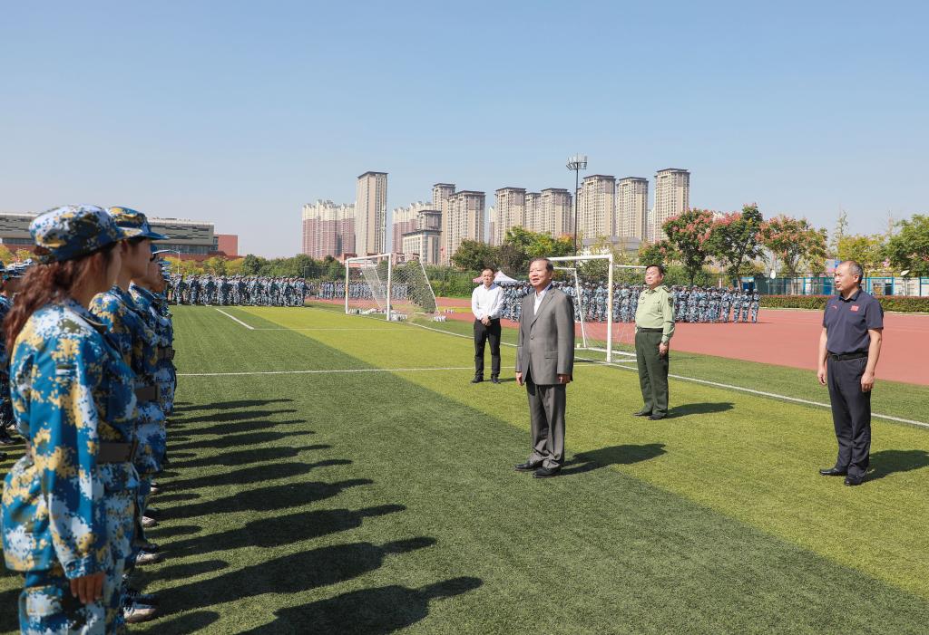 10月17日上午,校军训工作领导组组长、校党委副书记、校长袁亮到至诚体育场考察指导2023级新生军训工作,看望慰问承训教官、参训学生,以及相关职能部门、各学院、医疗和后勤服务保障等值班人员。校党委常委、副校长宫能平、董雨、王先江陪同。