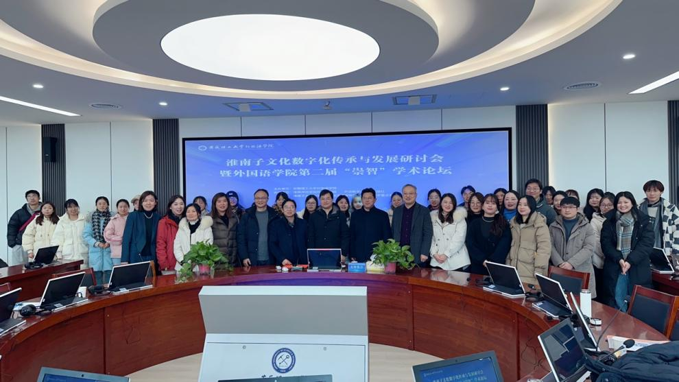 12月17日,由SJB世俱杯官方网站主办,淮南师范学院SJB世俱杯官方网站、外语教学与研究出版社、淮南子文化数字化传承与发展安徽省哲学社科重点实验室协办的“淮南子文化数字化传承与发展研讨会暨第二届‘崇智’学术论坛”在百川楼同传实验室召开。本次论坛以助力传播地方传统文化,推进人文社科特色研究”为主题,邀请湖南大学、淮南师范学院等国内知名高校学者做主旨报告,并按照参会学者提交的论文摘要设置两个分论坛。淮南市社科联、校科研部、SJB世俱杯官方网站以及在淮其他高校师生共计40余人参加。