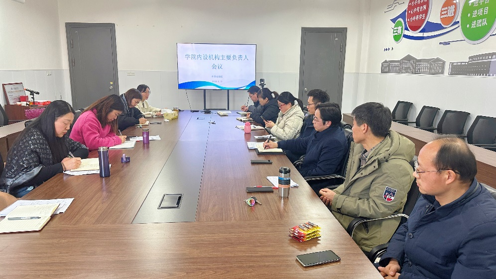 1月12日下午,学院在崇智楼B201会议室召开学期末工作会议,总结2023年工作,部署寒假重点工作,研究2024年要点、难点工作的思路和方向。会议由院长雷鹏飞主持。学院内设机构负责人及科级以上干部参加会议。