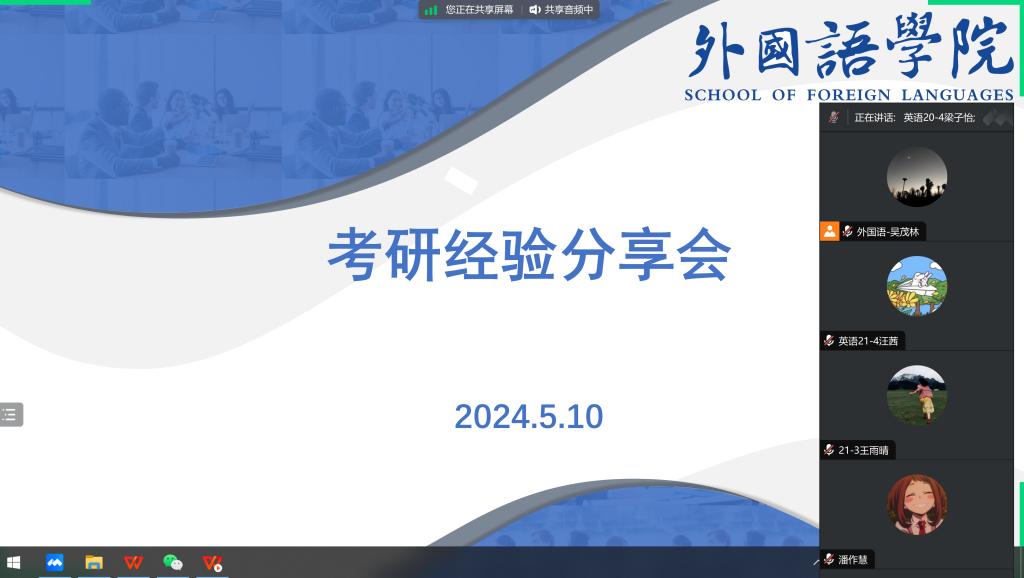 5月6日至10日,省、校品学兼优毕业生和考取985、双一流名校研究生的优秀毕业生代表分别为低年级学弟学妹进行了线上经验交流分享。他们在活动中毫无保留、畅所欲言,结合大学期间的成长感悟,交流了思想、学习、生活、就业等方面的收获和经验,同时对关系学生切身利益的教学、管理、生活服务等方面的常见问题,提出一些中肯的意见和建议,言辞间始终洋溢着对母校的眷恋与热爱之情。会议结束后,他们还与学弟学妹通过QQ、微信等方式保持长期联系,表示要为学院学弟学妹多办实事、多办好事。