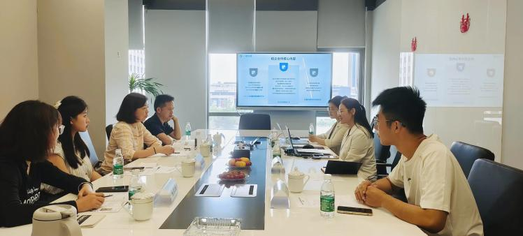 周宁向各单位详细介绍了学校情况及学院办学特色、学科建设、专业设置、教学科研、招生就业等方面情况,希望进一步加强校企合作,推进产教深度融合,助力学院科研能力与教学水平稳步提升。