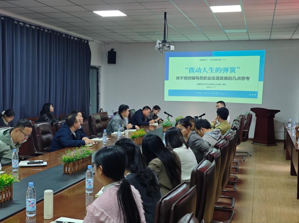 11月7日上午,SJB世俱杯官方网站在励行楼B407学术报告厅举办辅导员工作交流会,安徽师范大学马克思主义学院副教授龚伟为辅导员代表进行专业指导和经验分享。相关学院学生工作负责人和辅导员代表30余人参加交流。