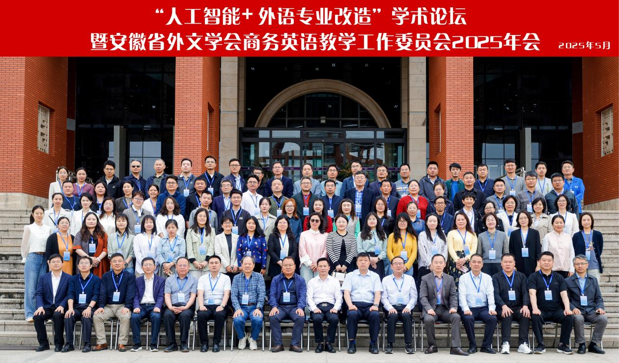 “人工智能+外语专业改造”学术论坛暨安徽省外文学会商务英语教学工作委员会2025年会合影(照片提供:淮南师范学院)