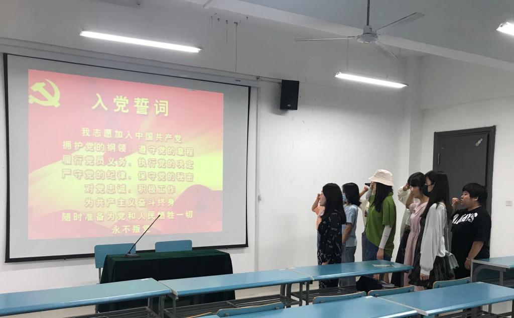 本次党课结束后,在2021届国际电子商务语言与文化专业硕士毕业生王娟同志的带领下,毕业生党员们面向党旗,昂首挺胸,举起右拳,重温入党誓词,再度庄严地许下承诺。