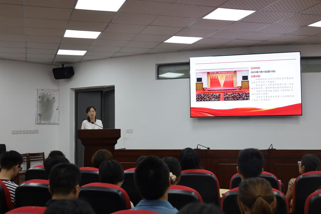 9月6日下午,学院在崇智楼A229学术报告厅召开政治理论学习专题会,专题学习党的二十届三中全会精神。会议由学院党委主要负责人主持。学院全体教职工参加学习。