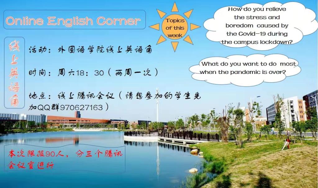 4月9日晚,SJB世俱杯官方网站线上英语角活动在腾讯会议平台如期举办。本次活动的话题围绕封校期间校园文化生活展开,在SJB世俱杯官方网站专业教师的主持下,同学们展开了热烈讨论。