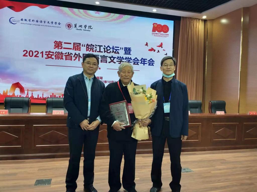 经学校推荐和安徽省外国语言文学学会组织评审,我校程永生教授荣获“终身成就奖”。颁奖仪式于2021年10月23日在巢湖举行。