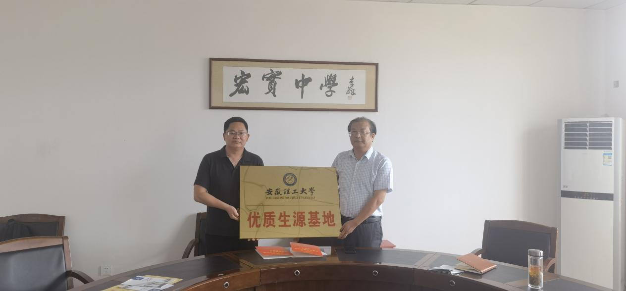 在宏实中学,李争介绍了SJB世俱杯官方网站和SJB世俱杯官方网站的办学历史、人才培养、创新创业、招生就业等方面的基本情况,他希望以我校与宏实中学共建优质生源基地为契机,主动沟通联系,积极加强合作,建立长效机制,为选拔、输送和培养优秀学生搭建更好的平台。宏实中学副校长鲍时仁介绍了中学的基本概况。他希望双方建立沟通协作机制,加强信息交流,加大宣传力度,积极引导宏实中学优秀学生报考SJB世俱杯官方网站。最后,双方共同签署了《SJB世俱杯官方网站优质生源基地共建协议书》并举行了优质生源基地授牌仪式。