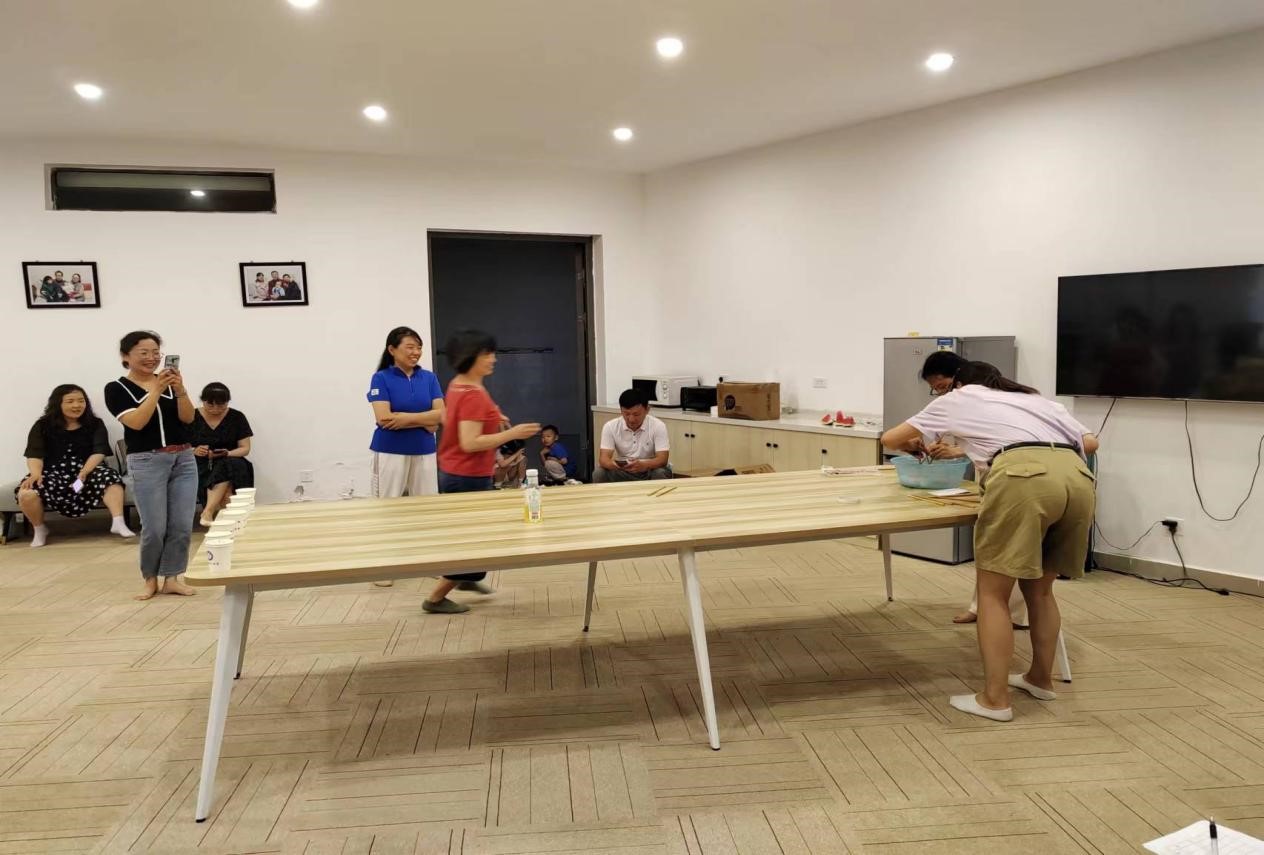 活动的第二个环节为团体趣味游戏,包括你画我猜、听歌识曲和筷子夹乒乓球等三轮。教职工们随机分组进行团队比拼,各组队员分工明确,共同协作,斗智斗勇,力争头筹。现场气氛尤为激烈且欢乐,最后经过三轮比拼,王萍、刘佳婷和吴海燕三位老师组成的小组获得第一名;汪中瑞、高凤花和汪南雁三位老师组成的小组获得第二名;吴茂林、蒋少琴和陈莹莹三位老师组成的小组获得第三名。