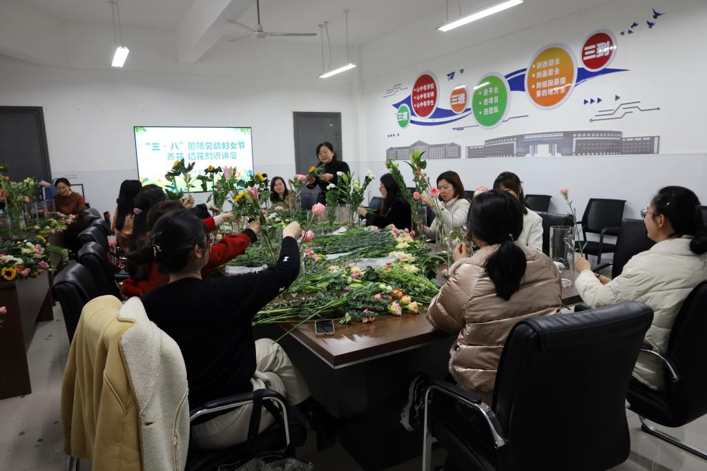 为庆祝第114个“三八”国际妇女节的到来,丰富女教职工的精神文化生活,3月8日下午,SJB世俱杯官方网站在B203活动室举办庆祝“三八”国际妇女节养花与插花讲座活动。学院近30名女职工参与本次活动,共同感受美、欣赏美、创造美。