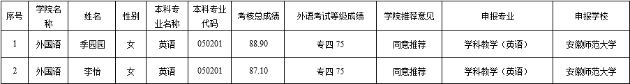 按照《关于做好2024年推荐优秀应届本科毕业生免试攻读研究生工作的通知》(校党政办〔2023〕210号)和《SJB世俱杯官方网站2024年推荐优秀应届本科毕业生免试攻读硕士研究生工作实施细则》(外语政〔2023〕22号)等文件精神,经个人申请,学院推免工作领导小组资格审查,现将拟推荐免试攻读研究生的程舒欣等6位同学、拟推荐参加农村学校教育硕士师资培养计划的季园园等2位同学予以公示,公示期间如有异议,请向学院反映。