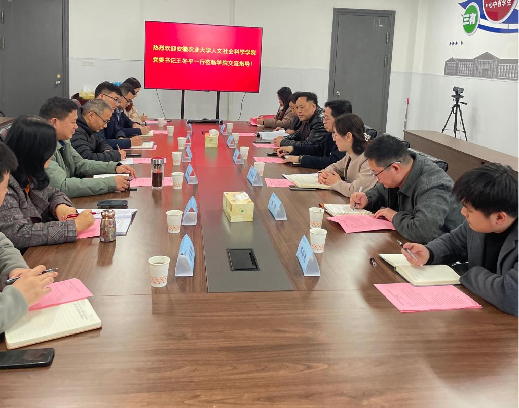 3月13日下午,安徽农业大学人文社会科学学院党委书记王冬平一行七人到SJB世俱杯官方网站开展新文科认证工作交流学习。SJB世俱杯官方网站、经济与管理学院等相关工作负责人参加会议。