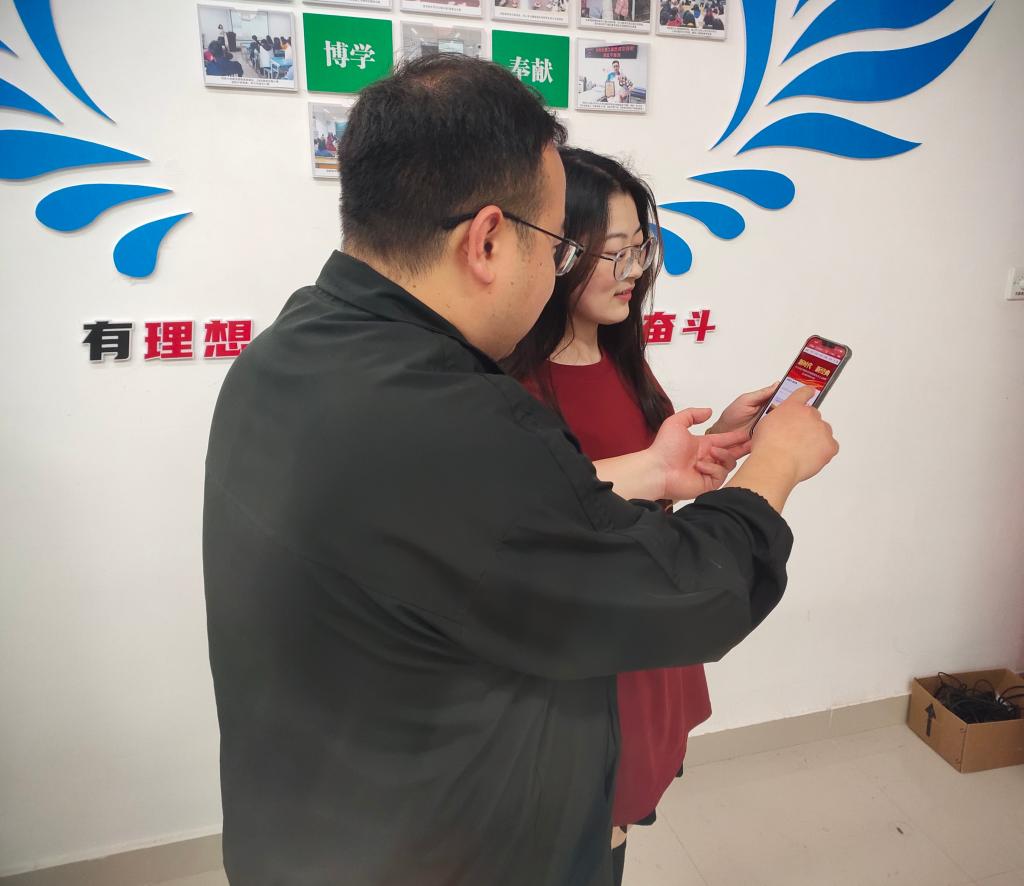 指导学生下载“学习强国”APP,学习国家安全法律知识(摄影:严安)