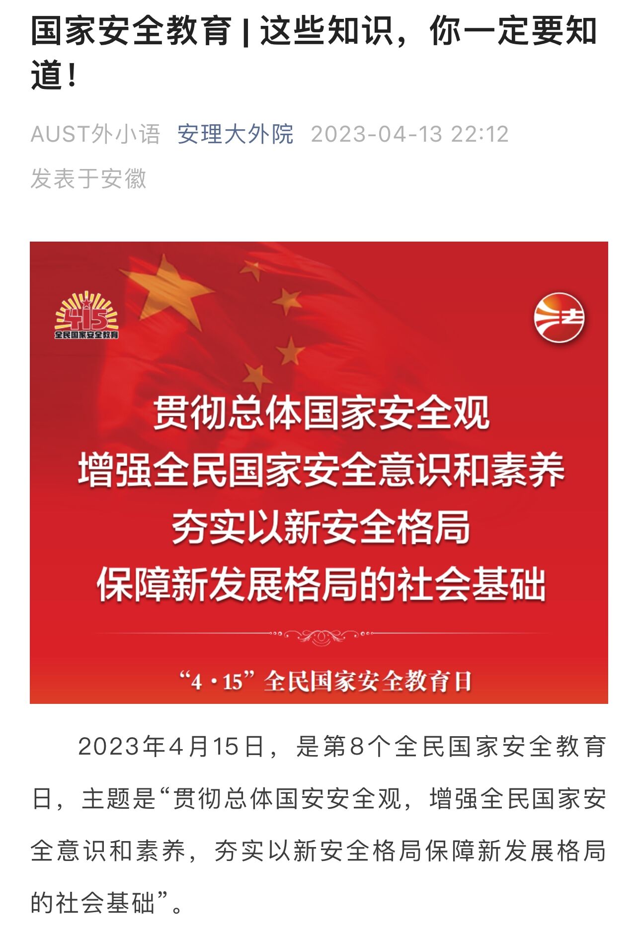 学院微信公众号发布题为《国家安全教育丨这些知识,你一定要知道》推文