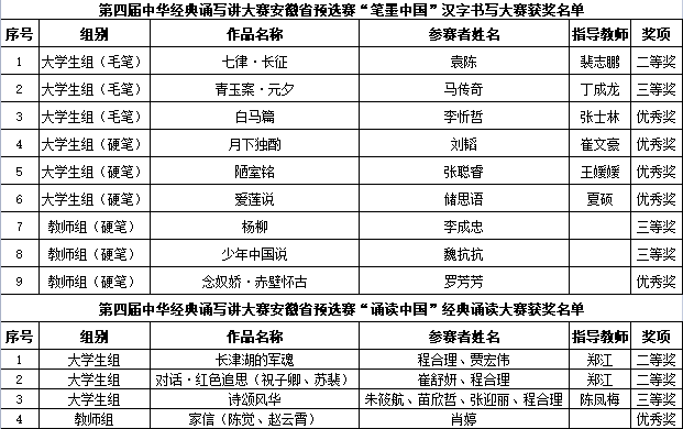 SJB世俱杯官方网站多位教师作品在全省第四届中华经典诵写讲大赛安徽省预选赛中获奖