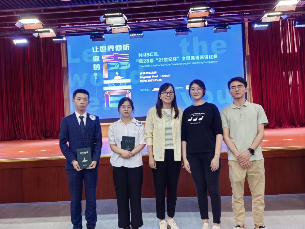 2023年5月28日,由中国日报社主办、合肥工业大学承办的第二十八届“21世纪杯”全国英语演讲比赛(安徽赛区决赛)在合肥工业大学翡翠湖校区成功举办,学院王宗华院长受邀担任评委。我校2022级李想、鲁良婷同学在比赛中表现优秀,分别获得二等奖、三等奖。