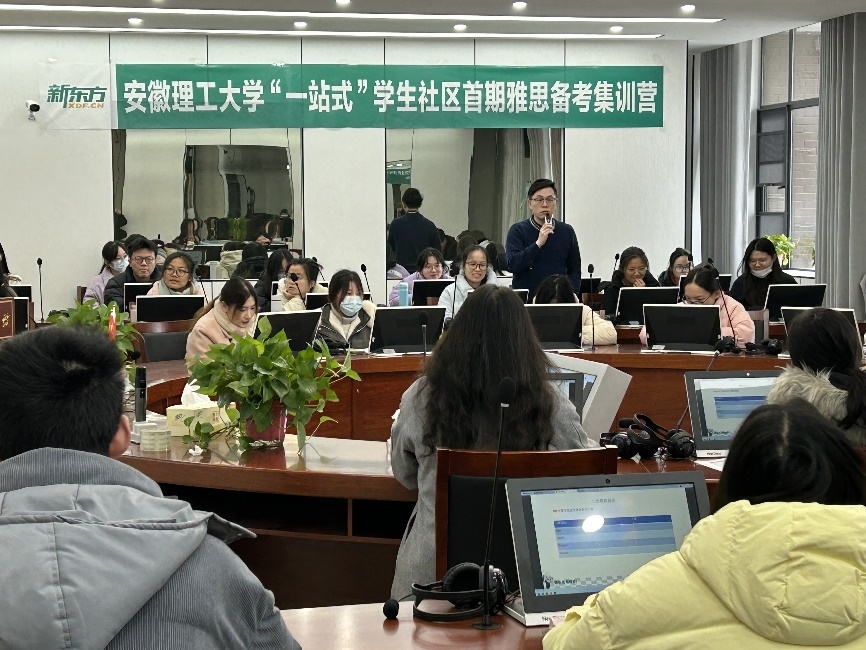 为提升学生海外升学率,扎实推进“我为学生办实事”工作,1月6日,SJB世俱杯官方网站联合新东方教育科技集团(合肥)国际教育出国考试中心举办的首期雅思备考集训营在“一站式”学生社区百川楼东B208同声传译实验室开营。学院80位在校本科生参加本次集训。